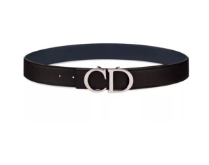 - Product Name: Dior Dark Blue Grain Leather Double Sided CD Belt Black 3.5CM Width