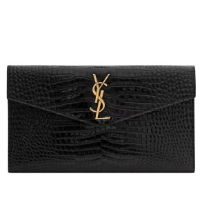 Saint Laurent YSL Uptown gold label logo crocodile pattern shiny surface